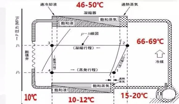 夏天的空調室外環境溫度35度左右,我們就可以估算此時的冷凝溫度:冷凝溫度=35+10~15℃)=45℃。
