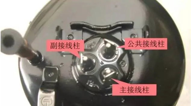 萬用表的歐姆檔(一般200歐姆的檔位)測量每兩點之間的電阻值,阻值大的兩點(BC)為啟動和運轉(zhuǎn)繞組。剩的那個點(A)是公共點。然后把所測量的兩個點(B,C)再分別跟公共端連接,阻值較大的是啟動繞組,小的為運轉(zhuǎn)繞組。三點之間阻值關(guān)系為:BC=AB+AC。