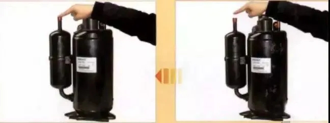 用手指按住吸氣管,若感覺到有吸氣壓力, 則表示壓縮機(jī)正常。當(dāng)把手指移開時(shí), 如果沒有感覺到任何吸力,說明壓縮機(jī)沒有吸氣能力。