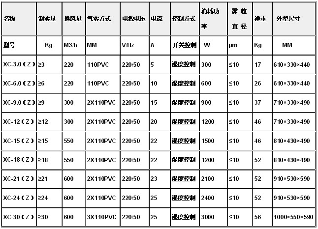 注:Z型為濕度比例自動控制方式,不帶“Z”型為手動開關型;B型為防爆型;可定制非標設備可用純水無“白粉”污染,萬向輪移動式或支架安裝式,也可根據客戶非標要求定做。