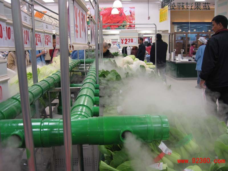 案例:超市的蔬菜柜臺(tái),在霧氣中浮現(xiàn)的蔬菜水果,看上去就像清晨剛從果園菜地里摘下來(lái)一樣新鮮。據(jù)介紹,這是超市為延長(zhǎng)蔬菜水果的“壽命”而啟用的新式“武器”,其噴出的霧氣一來(lái)可以保持低溫,二來(lái)能均勻保持水分,三來(lái)整個(gè)區(qū)域降溫造景。超市的蔬菜水果賣場(chǎng)中,一些青菜水果常因水分蒸發(fā)變質(zhì),導(dǎo)致“賣相”不好。新引進(jìn)的噴霧系統(tǒng)令不少顧客好奇不已,經(jīng)霧化的水汽可使空氣保持一定的濕度和低溫,使青菜水果常置于鮮嫩保質(zhì)之中。